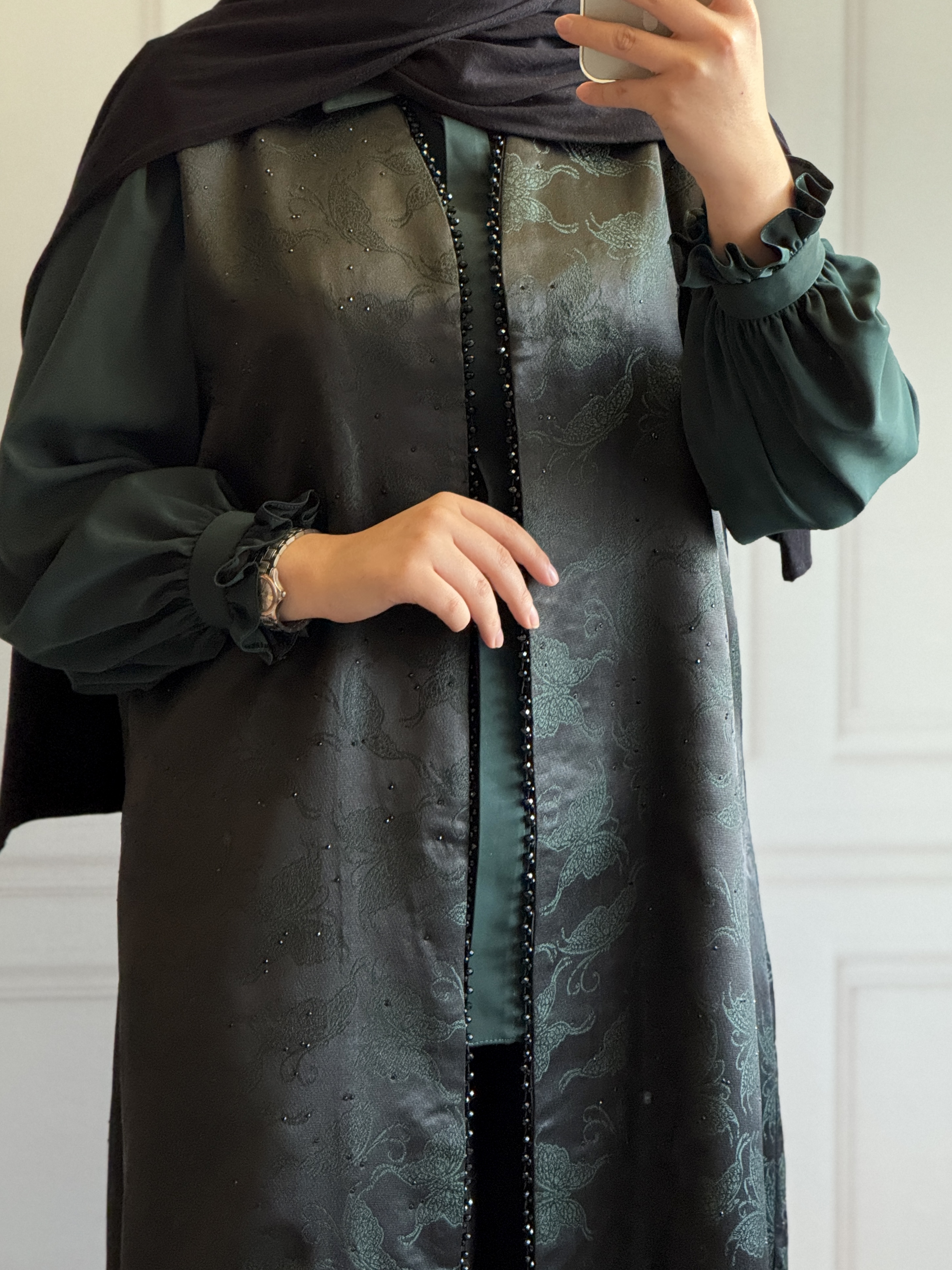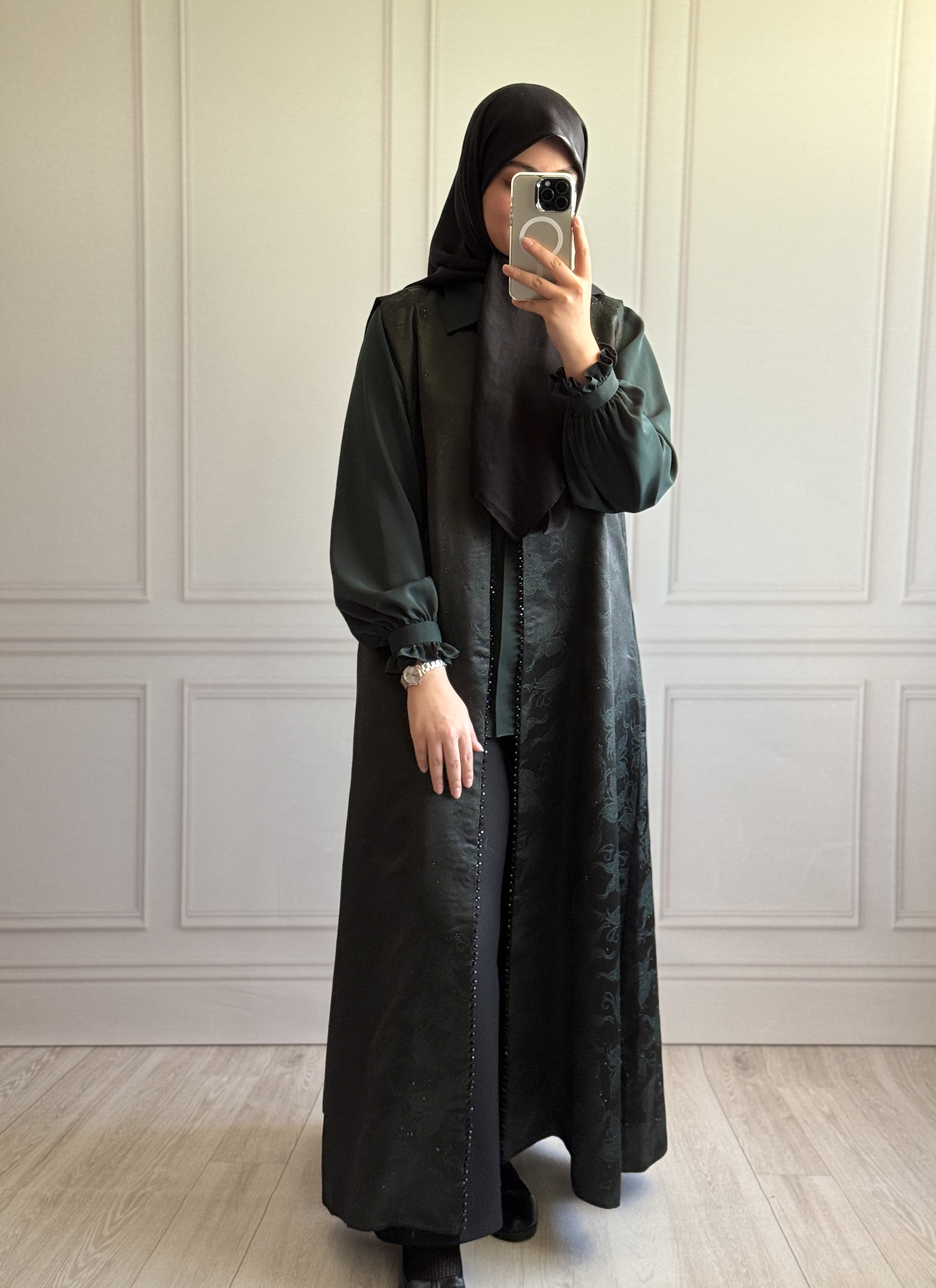 جزئیات: شومیز از جنس ژاکلین لطیف ▫️ وست ژاکارد 📏 قد شومیز: ۷۰ 📏 قد آستین شومیز: ۶۰ و نوارمغزی شده با نوار کریستال